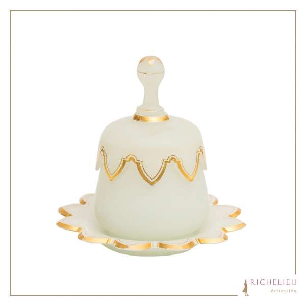 Compotier opaline givre blanc 3 pieces 19eme siecle