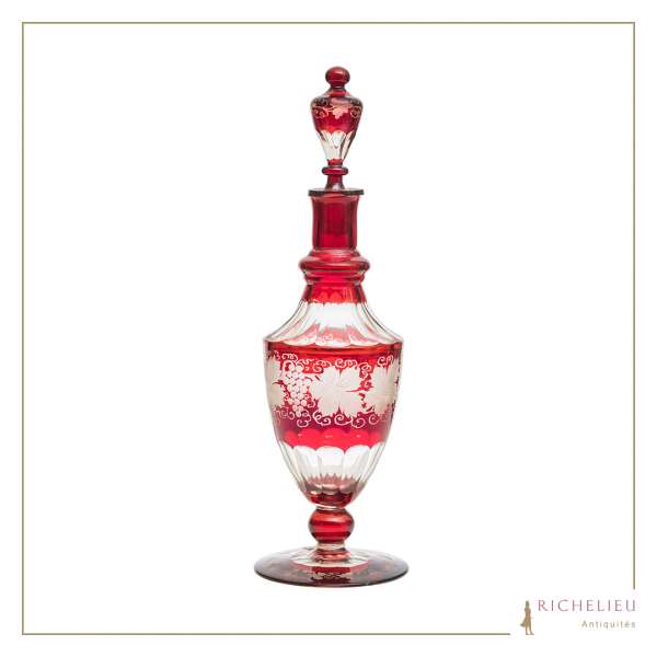 Carafe grande overlay cristal transparent et rubis 19eme siecle